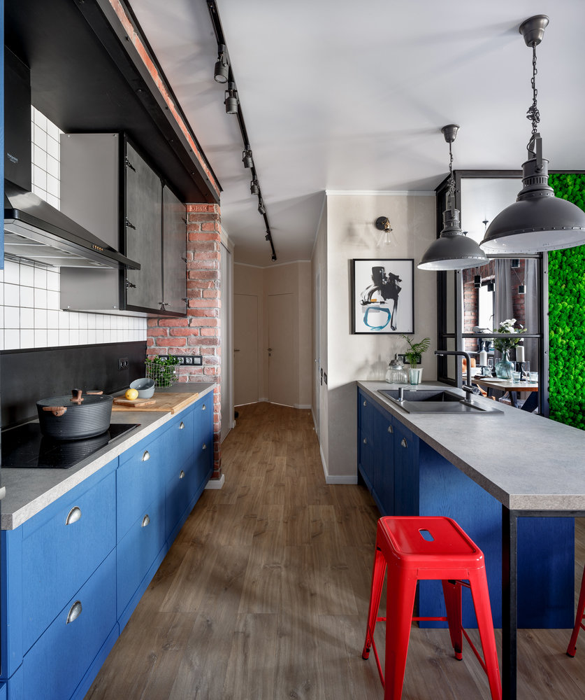 Фотография: Кухня и столовая в стиле Лофт, Современный, Квартира, Проект недели, Legrand, Самара, Монолитный дом, 4 и больше, Более 90 метров, Etika, Айгуль Султанова, яркая квартира – фото на INMYROOM
