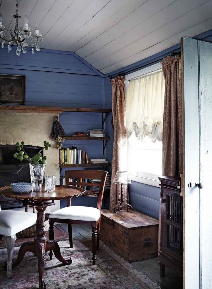 Бывшая столовая, а сейчас уже гостиная, со вкусом обставлена ​​антикварными предметами. Только посмотрите на эти жалюзи ручной работы.
