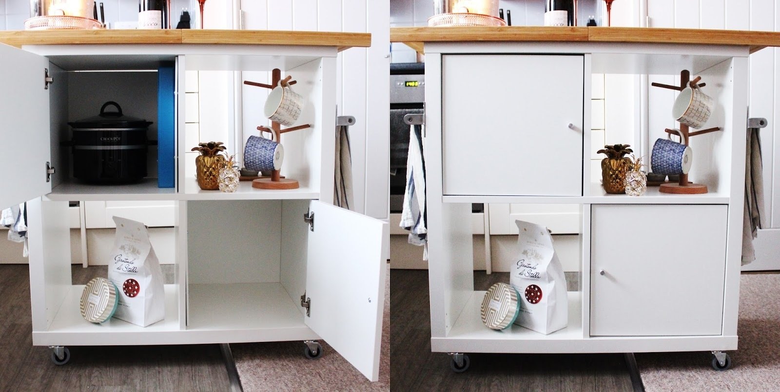Можно вставить шкафчики с дверцами, а можно с выдвижными ящиками — выбор за вами.