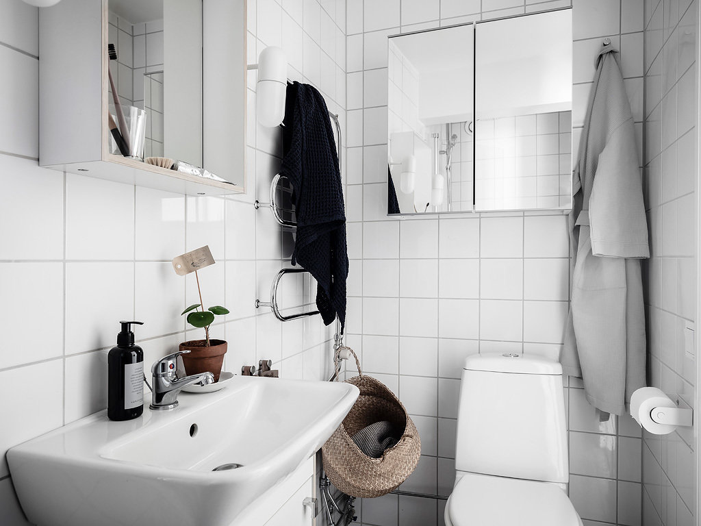 Фотография: Ванная в стиле Скандинавский, Прованс и Кантри, Декор интерьера, Белый, Зеленый, Эко, 2 комнаты – фото на INMYROOM