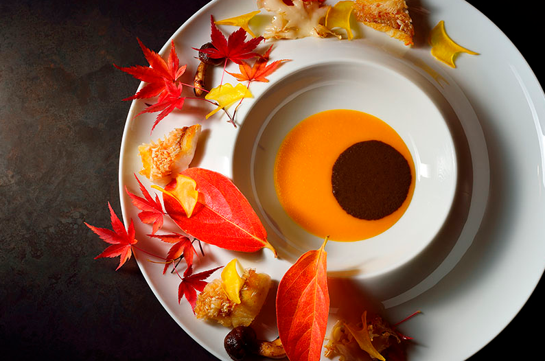 "Образ Луны". Пюре из ароматной дыни в окружении грибов.