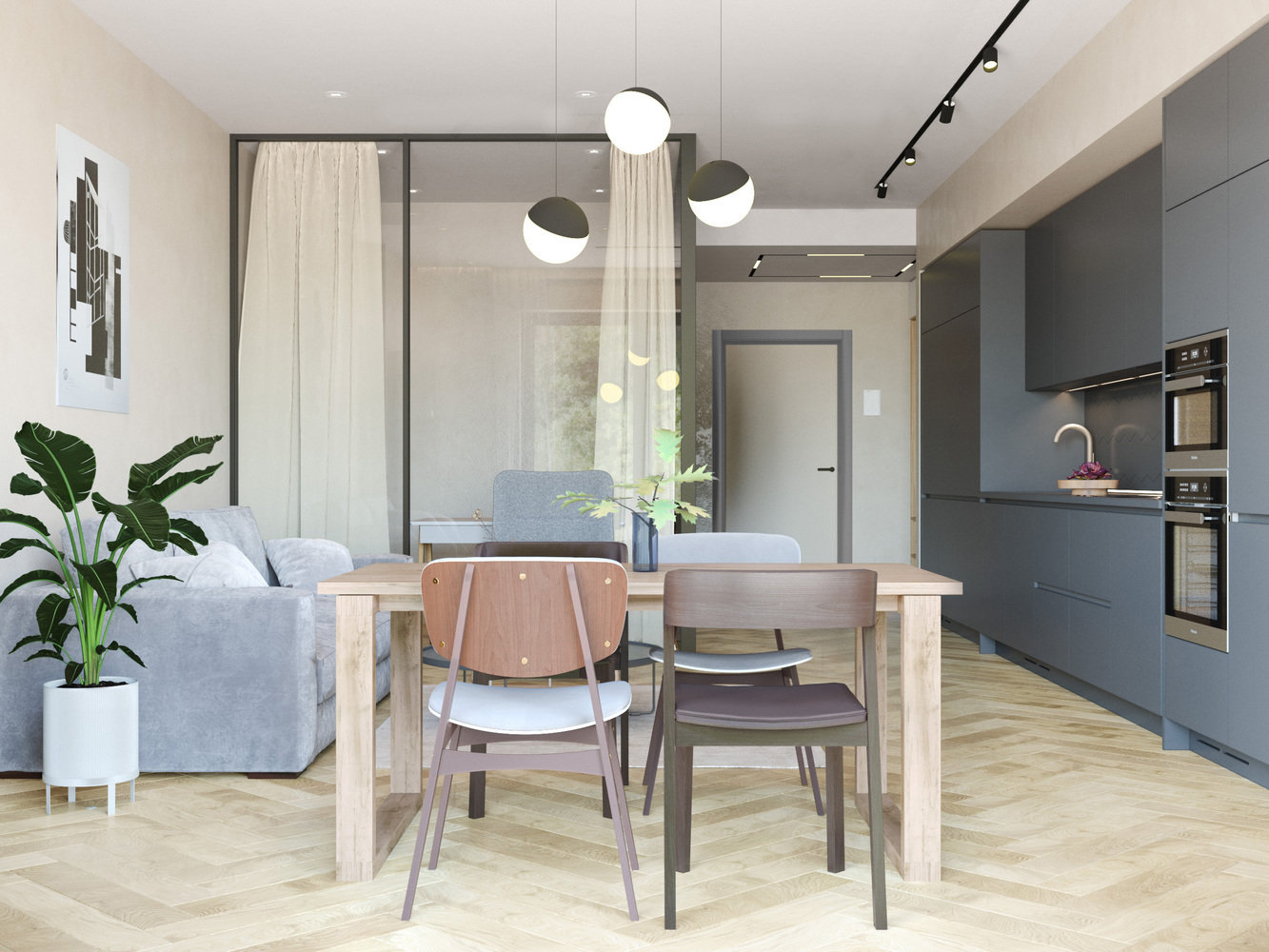 Фотография: Кухня и столовая в стиле Современный, Квартира, Проект недели, Москва, Estima, Евгения Ермолаева, EEDS, Монолитный дом, 2 комнаты, 60-90 метров – фото на INMYROOM