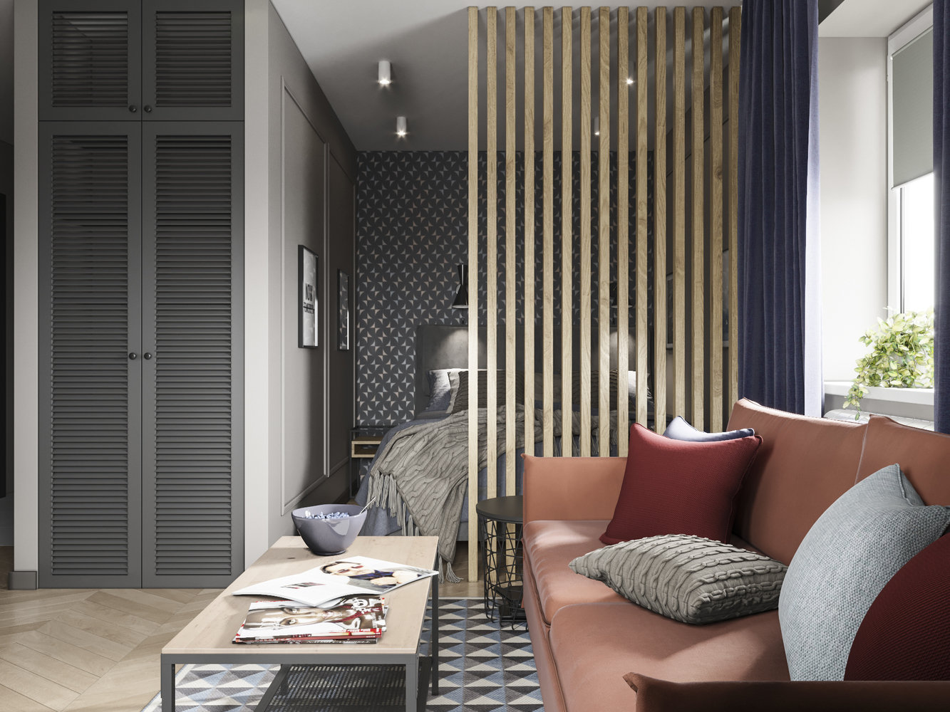 Фотография: Гостиная в стиле Современный, Малогабаритная квартира, Квартира, Проект недели, «Атмосфера», Монолитный дом, 1 комната, до 40 метров, Алена Еременко, Ярославль, ПРЕМИЯ INMYROOM – фото на INMYROOM