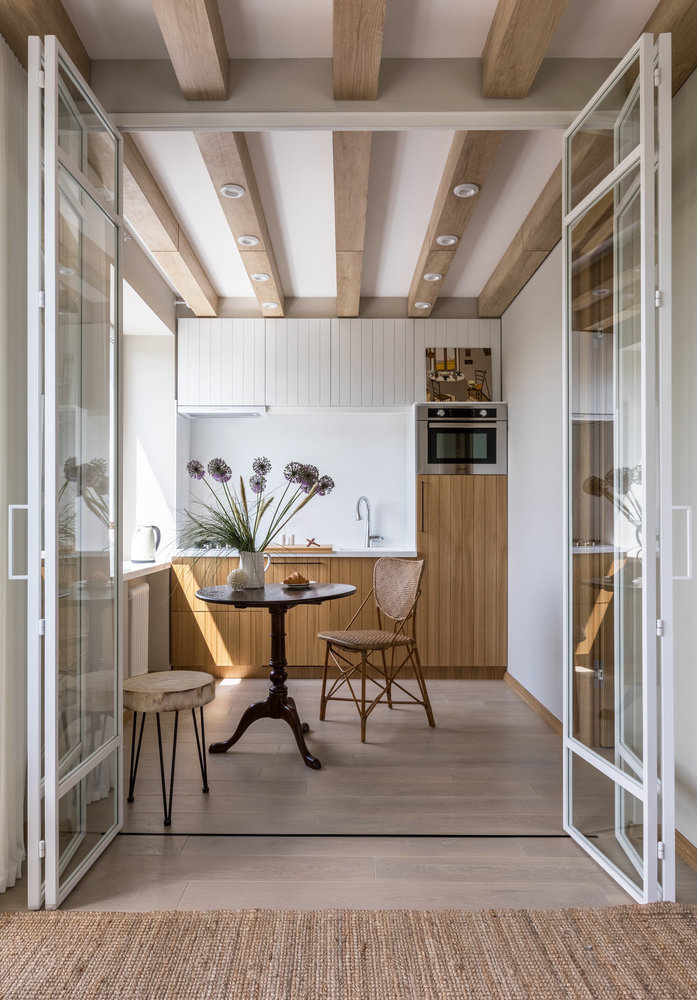 Фотография: Кухня и столовая в стиле Скандинавский, Малогабаритная квартира, Квартира, как оформить малогабаритку, система хранения в малогабаритке, идеи для малогабаритки, как визуально увеличить площадь малогабаритки, малогабаритка, до 40 метров – фото на INMYROOM