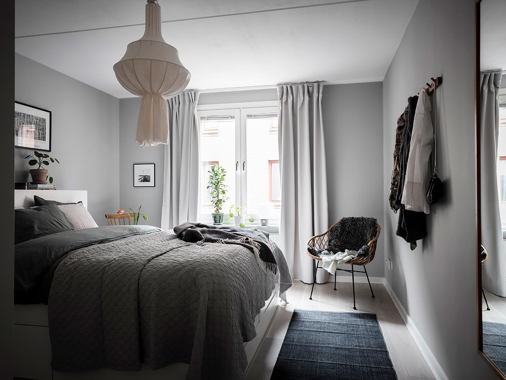 Фотография: Спальня в стиле Скандинавский, Декор интерьера, Квартира, Планировки, Декор, Белый, Синий, Серый, Эко, 2 комнаты – фото на INMYROOM