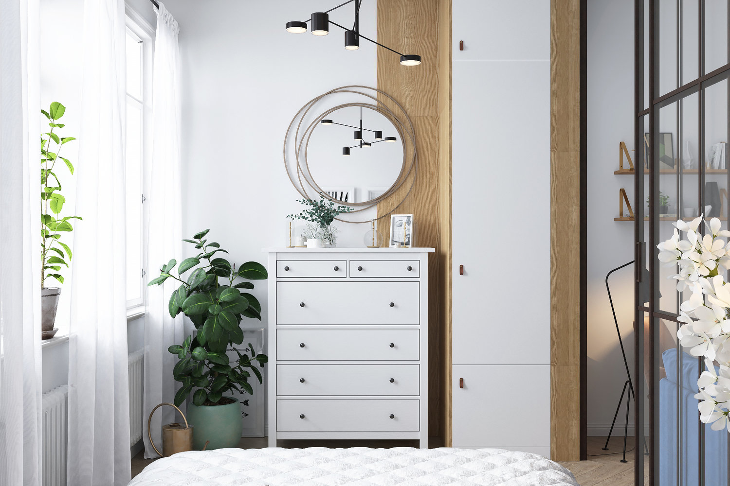 Фотография: Спальня в стиле Современный, Скандинавский, Квартира, Проект недели, Москва, Сталинка, 2 комнаты, 40-60 метров, Марина Меренкова – фото на INMYROOM