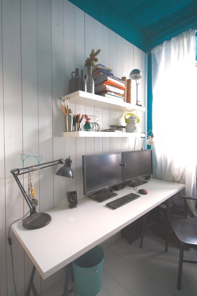 Фотография: Офис в стиле Современный, Малогабаритная квартира, Квартира, Цвет в интерьере, Дома и квартиры, Белый, Бирюзовый – фото на INMYROOM