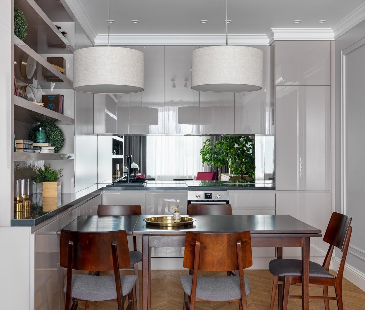 Фотография: Кухня и столовая в стиле Современный, Классический, Квартира, Проект дня, Москва, 2 комнаты, 3 комнаты, 60-90 метров, Монолитно-кирпичный – фото на INMYROOM