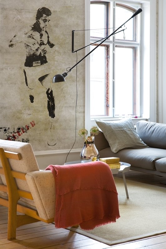 Фотография: Гостиная в стиле Скандинавский, Современный, Карта покупок, Индустрия, Фотообои – фото на INMYROOM