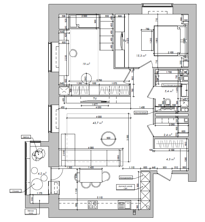 Фотография: Планировки в стиле , Современный, Квартира, Проект дня, Монолитный дом, 3 комнаты, Более 90 метров, Полина Степанова, D'POLLY – фото на INMYROOM