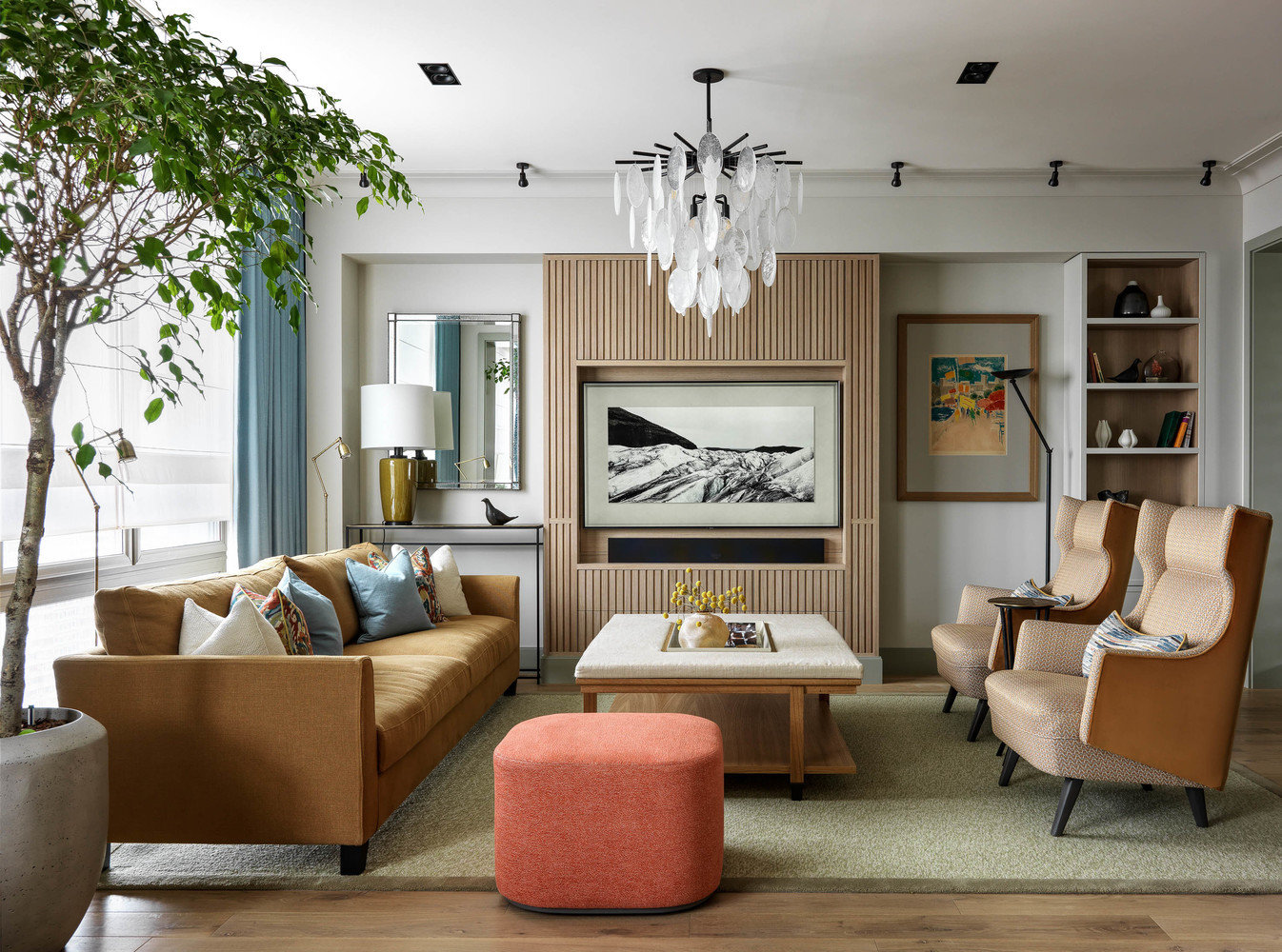 Фотография: Гостиная в стиле Современный, Эклектика, Квартира, Проект дня, Москва, Анна Павловская, 4 и больше, Более 90 метров, Эксклюзивные проекты, ПРЕМИЯ INMYROOM – фото на INMYROOM