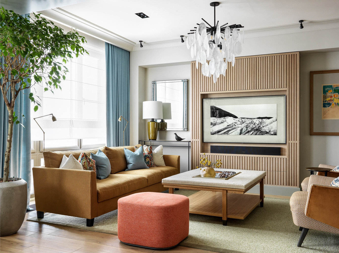 Фотография: Гостиная в стиле Современный, Эклектика, Квартира, Проект дня, Москва, Анна Павловская, 4 и больше, Более 90 метров, Эксклюзивные проекты, ПРЕМИЯ INMYROOM – фото на INMYROOM