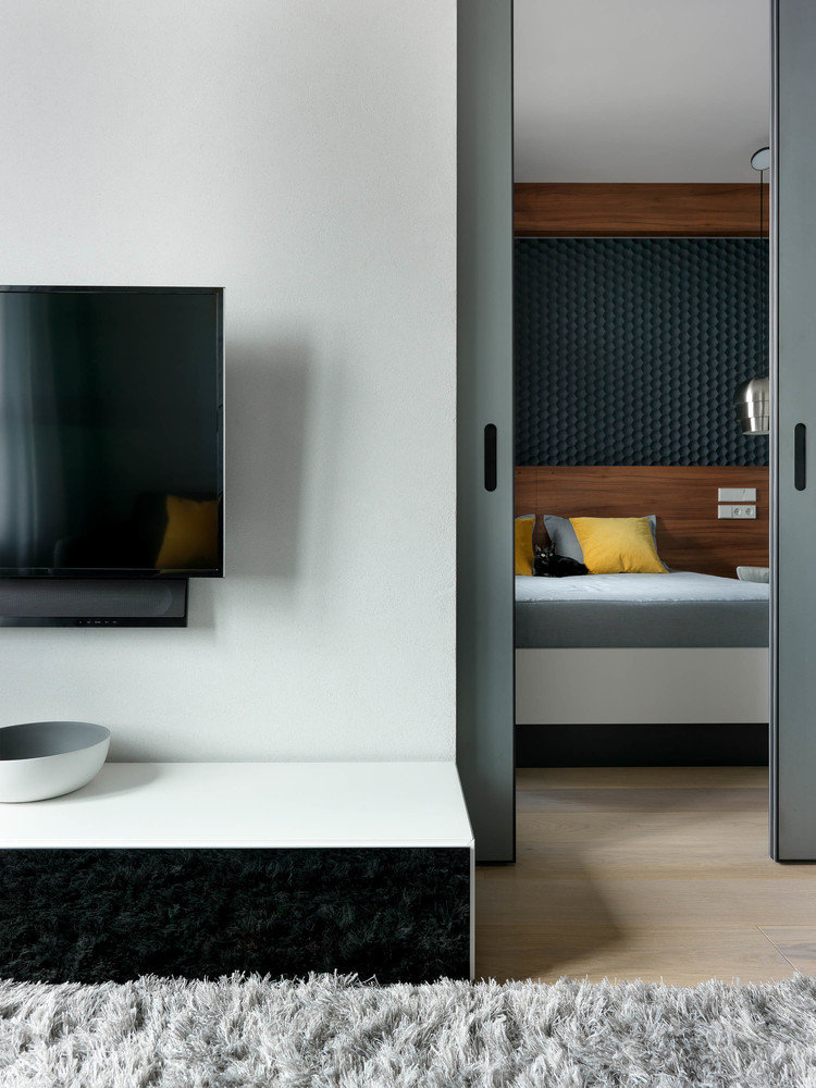 Фотография: Гостиная в стиле Современный, Квартира, Минимализм, Проект недели, Москва, Михаил Новинский, Ольга Погорелова, Монолитный дом, 2 комнаты, 40-60 метров, Марк Гришин, UNION – фото на INMYROOM