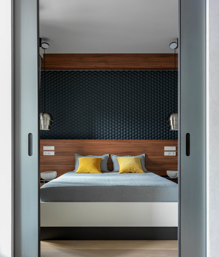 Фотография: Спальня в стиле Современный, Квартира, Минимализм, Проект недели, Москва, Михаил Новинский, Ольга Погорелова, Монолитный дом, 2 комнаты, 40-60 метров, Марк Гришин, UNION – фото на INMYROOM