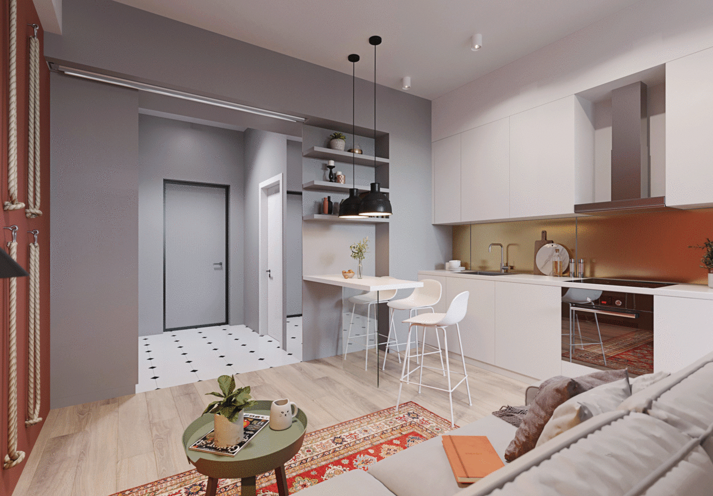 Маленькая студия с гостиной и спальней на 31 м²4,7