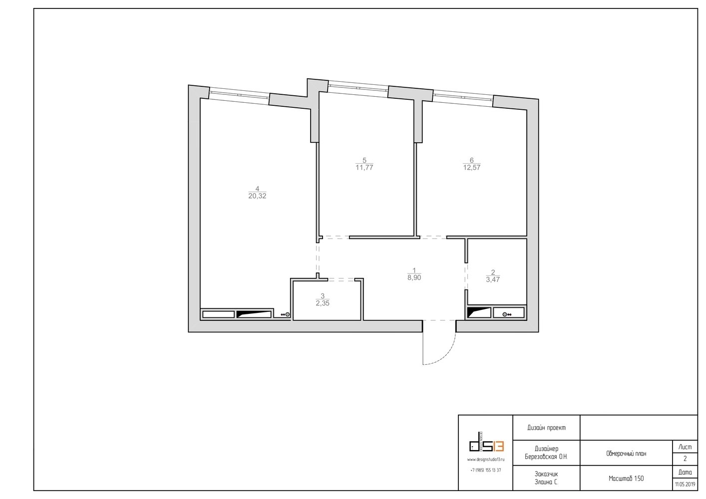 Белые стены и яркие детали: интерьер трешки в Москве4,5