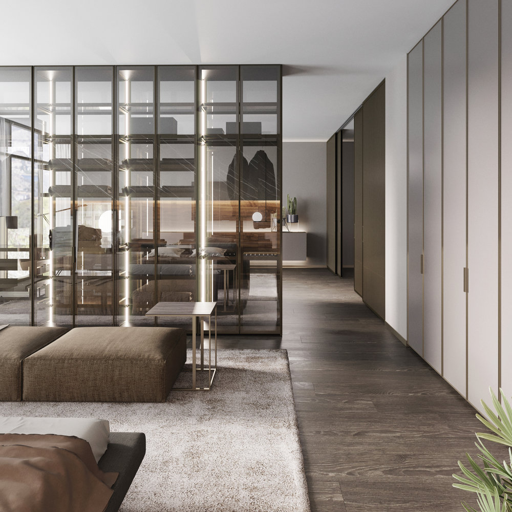 Фотография: Спальня в стиле Минимализм, Гид, цветные двери, межкомнатные двери, UNION, двери и мебель в одном стиле, стеклянные гардеробные, невидимые наличники, скрытые двери – фото на INMYROOM