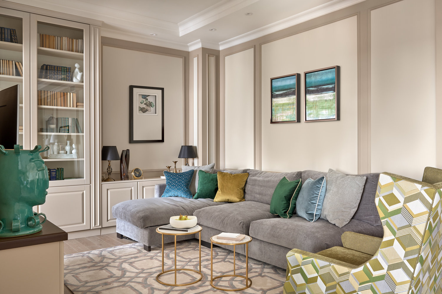 Фотография: Гостиная в стиле Современный, Классический, Квартира, Проект недели, Москва, Наталья Преображенская, Студия дизайна интерьеров "Уютная Квартира", Монолитный дом, 4 и больше, Более 90 метров, ПРЕМИЯ INMYROOM – фото на INMYROOM