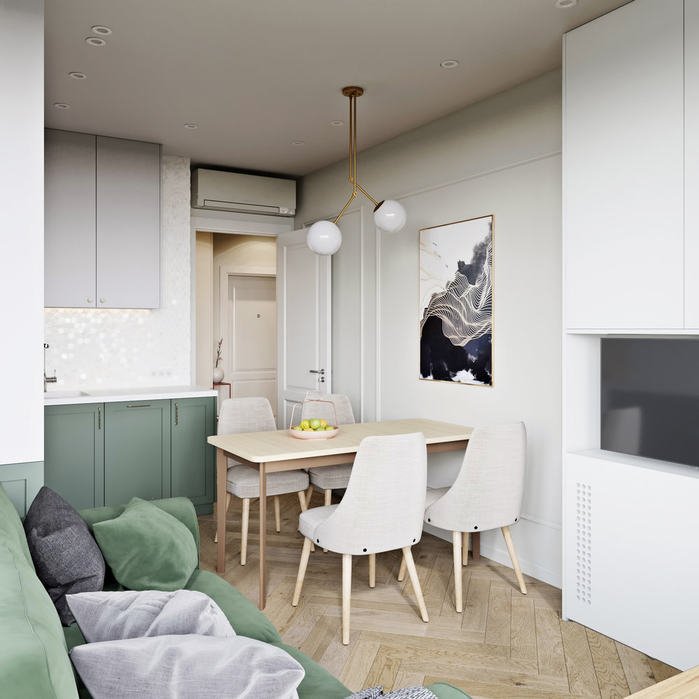 Фотография: Кухня и столовая в стиле Современный, Квартира, Проект дня, Москва, Монолитный дом, 2 комнаты, 60-90 метров, Бюро «Общая Площадь» – фото на INMYROOM