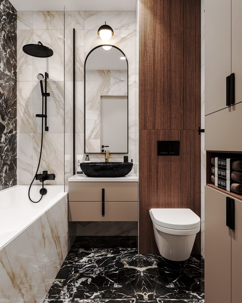 Фотография: Ванная в стиле Современный, Эклектика, Квартира, Белый, Проект недели, Синий, Коричневый, 1 комната, 40-60 метров, Tabooret – фото на INMYROOM
