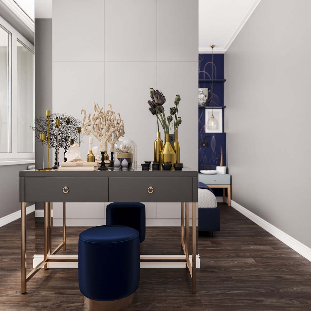 Фотография: Спальня в стиле Современный, Эклектика, Квартира, Белый, Проект недели, Синий, Коричневый, 1 комната, 40-60 метров, Tabooret – фото на INMYROOM