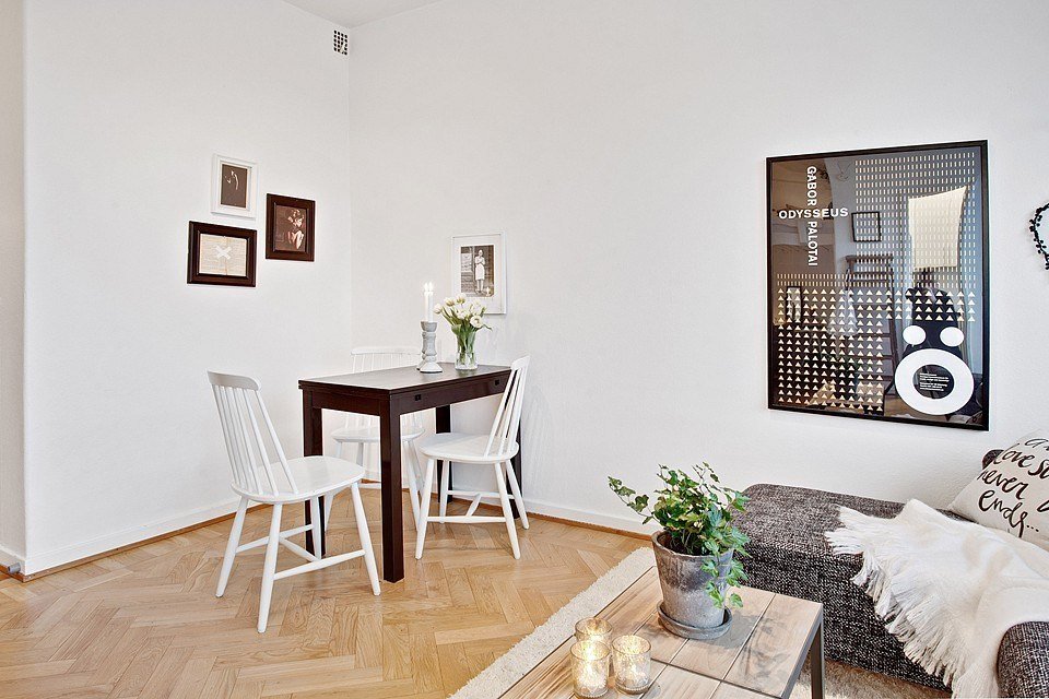 Фотография: Гостиная в стиле Скандинавский, Малогабаритная квартира, Квартира, Швеция, Цвет в интерьере, Дома и квартиры, Белый – фото на INMYROOM