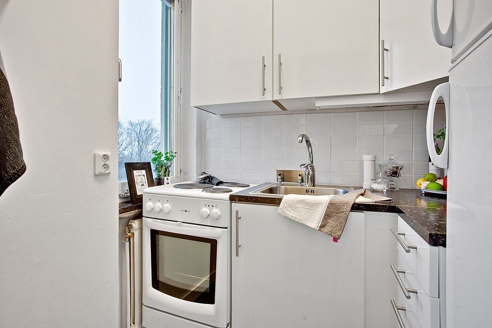 Фотография: Кухня и столовая в стиле Скандинавский, Современный, Малогабаритная квартира, Квартира, Швеция, Цвет в интерьере, Дома и квартиры, Белый – фото на INMYROOM
