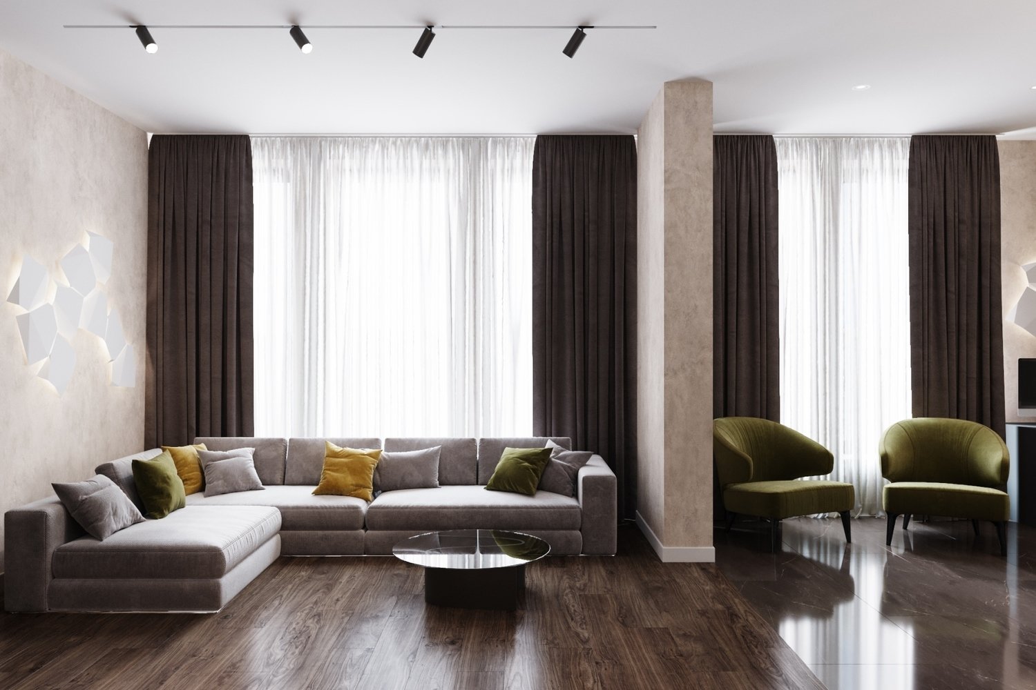 Фотография: Гостиная в стиле Современный, Проект недели, Москва, Бежевый, Дарья Ельникова, 4 и больше, Более 90 метров – фото на INMYROOM
