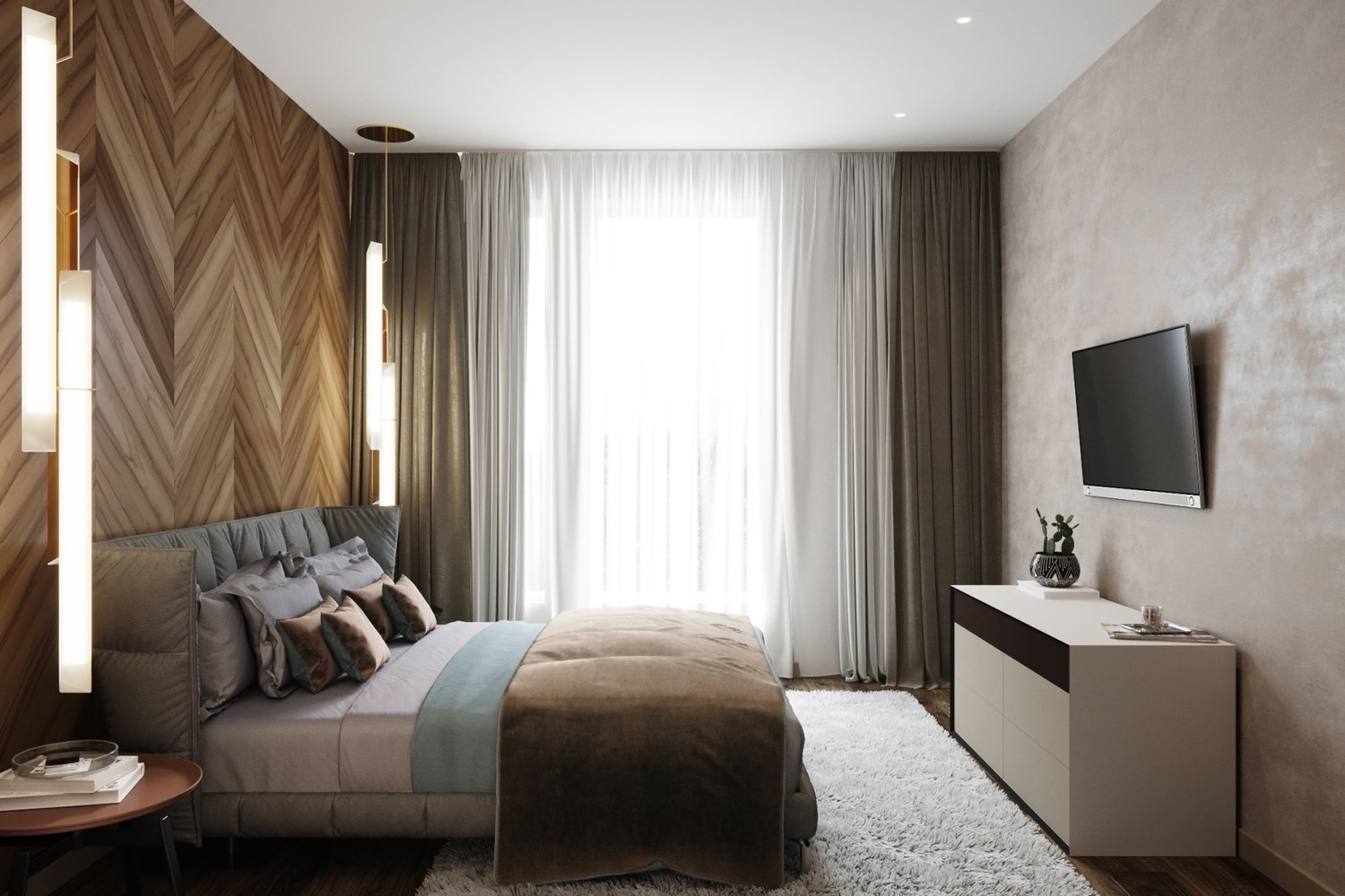 Фотография: Спальня в стиле Современный, Проект недели, Москва, Бежевый, Дарья Ельникова, 4 и больше, Более 90 метров – фото на INMYROOM