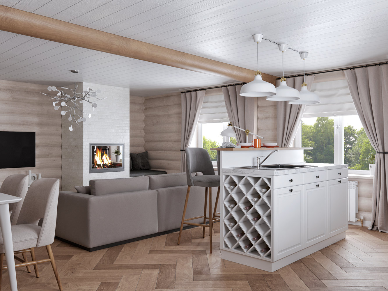 сканди гостинная в бревенчатом домеГамма