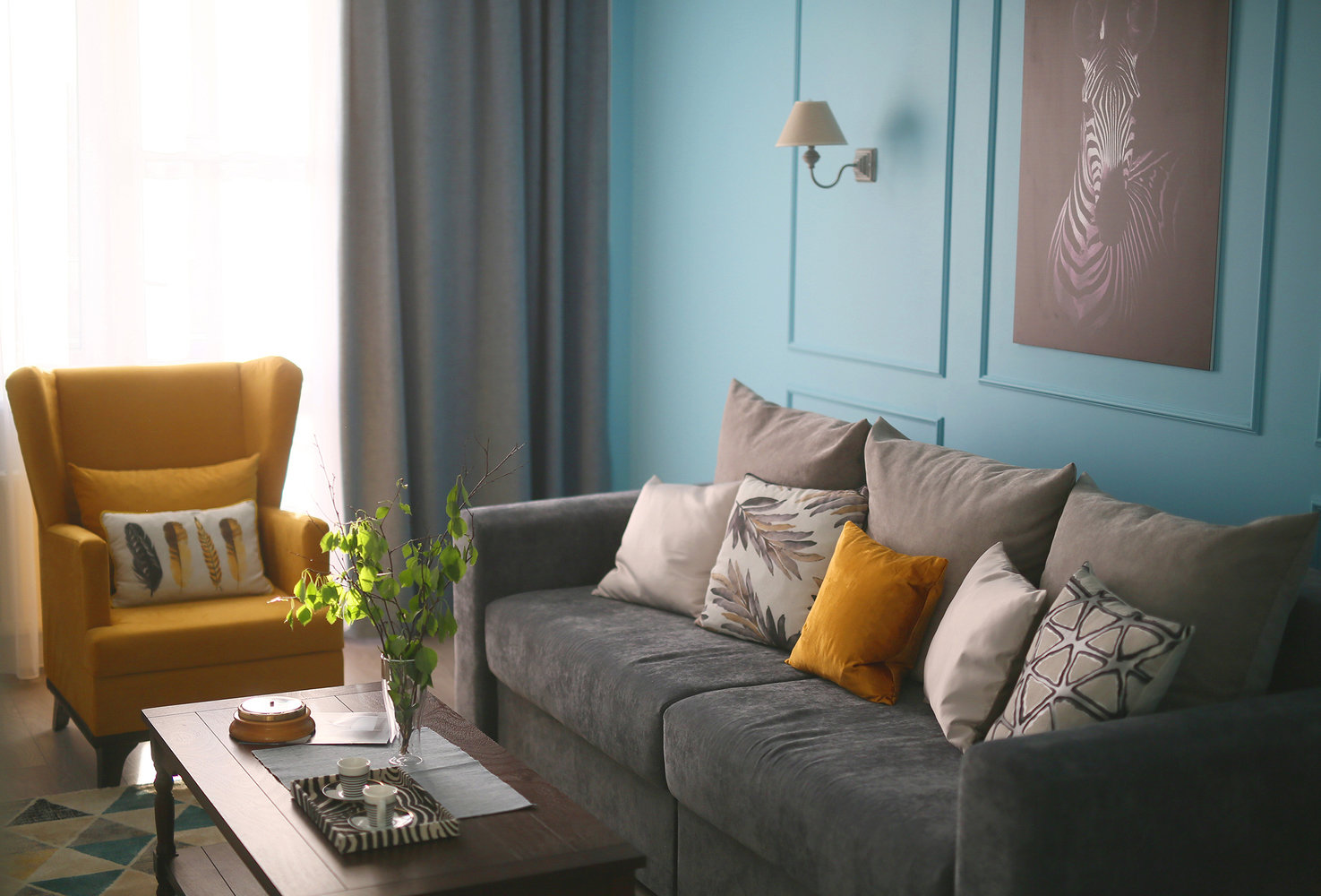 Фотография: Гостиная в стиле Эклектика, Кухня и столовая, Ванная, Прихожая, Спальня, Балкон, Проект недели, Желтый, Синий, Голубой, 1 комната, до 40 метров, ПРЕМИЯ INMYROOM – фото на INMYROOM