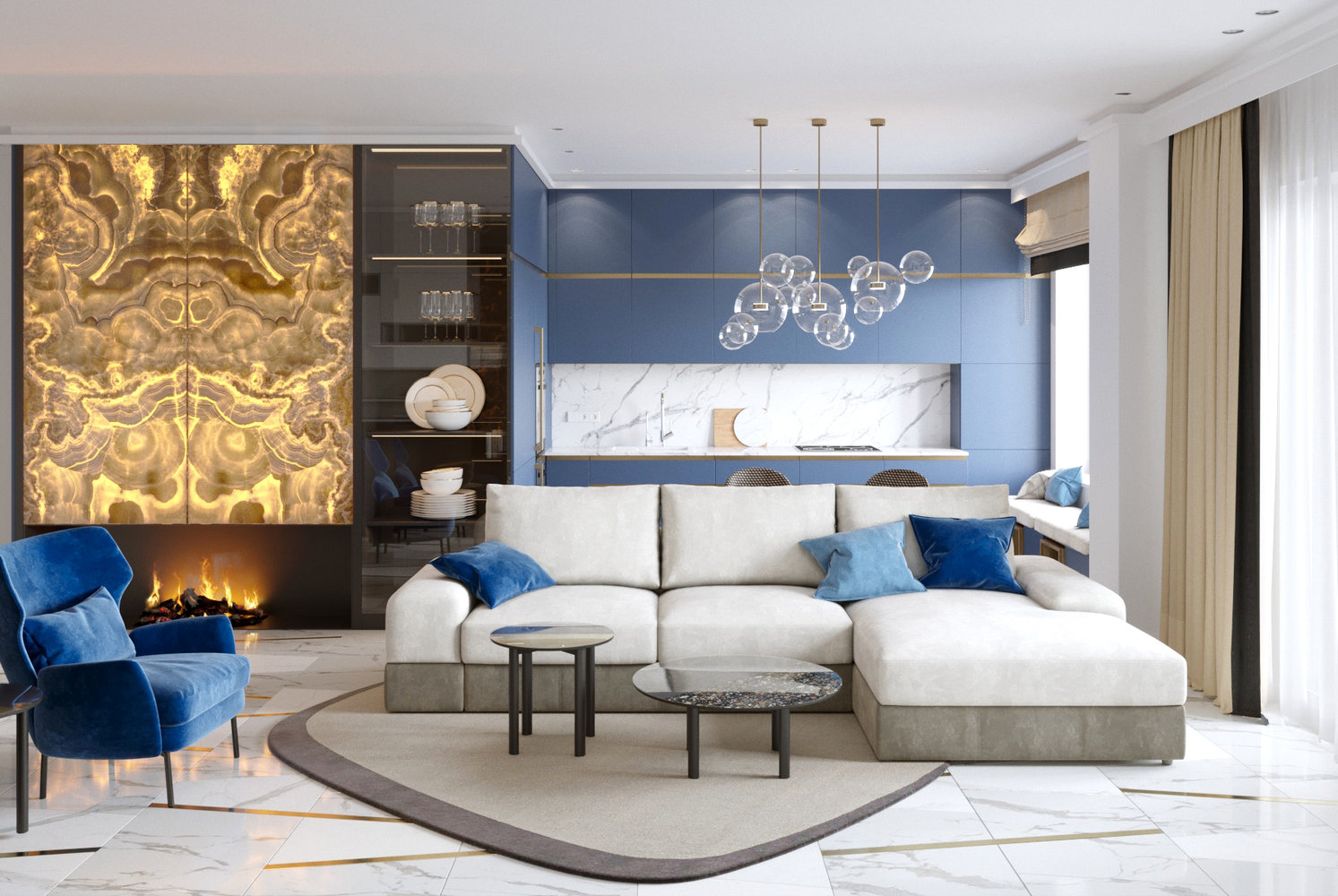 Трешка с подсвеченным ониксом над камином5,0