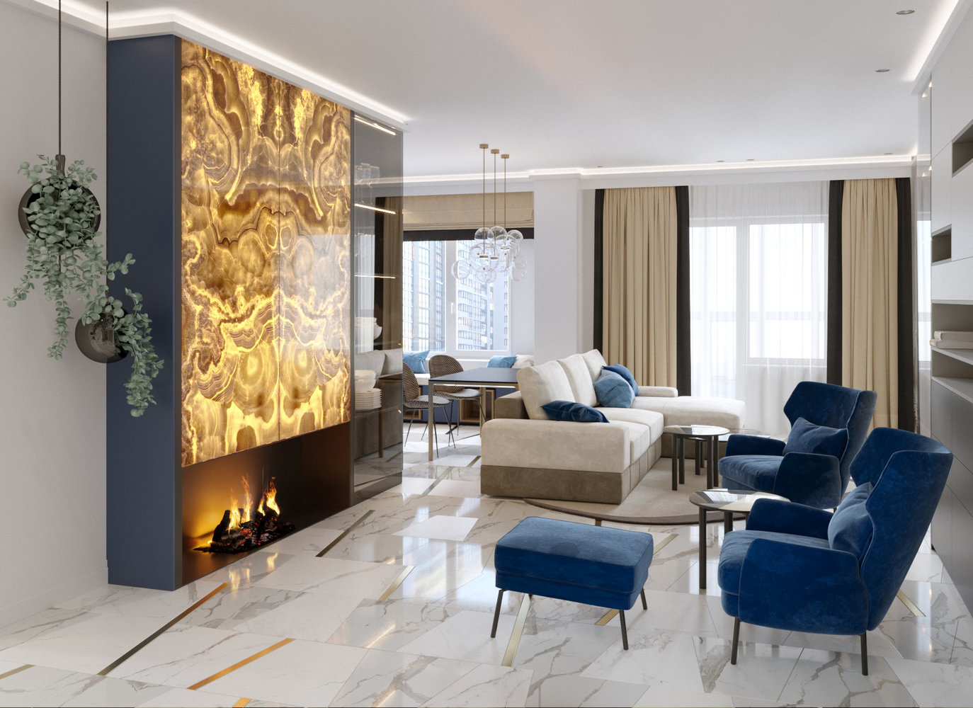 Трешка с подсвеченным ониксом над камином4,9