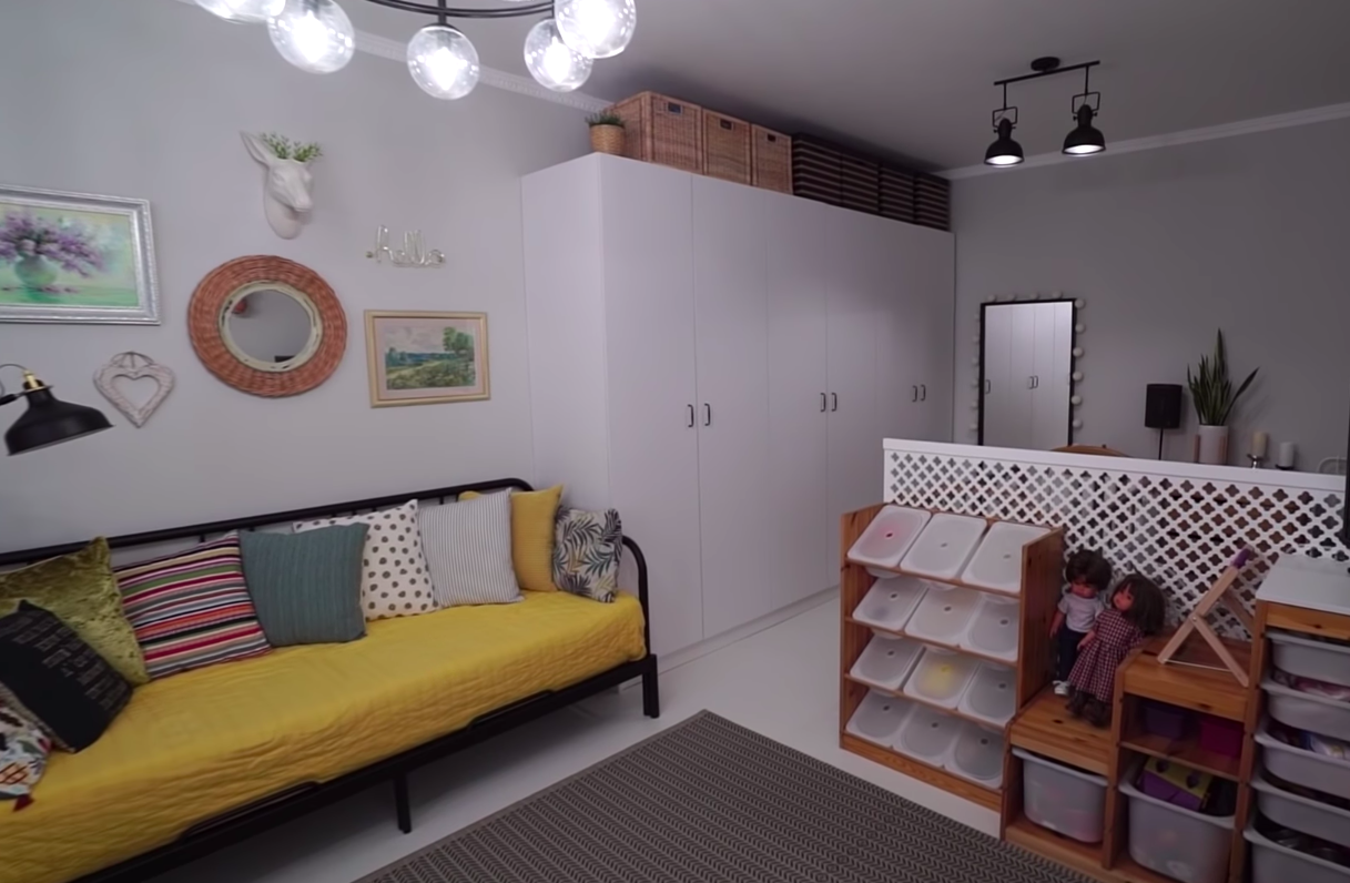Фотография:  в стиле , Гостиная, Детская, Скандинавский, Квартира, Планировки, Советы, идеи для малогабаритки, 1 комната, до 40 метров – фото на INMYROOM