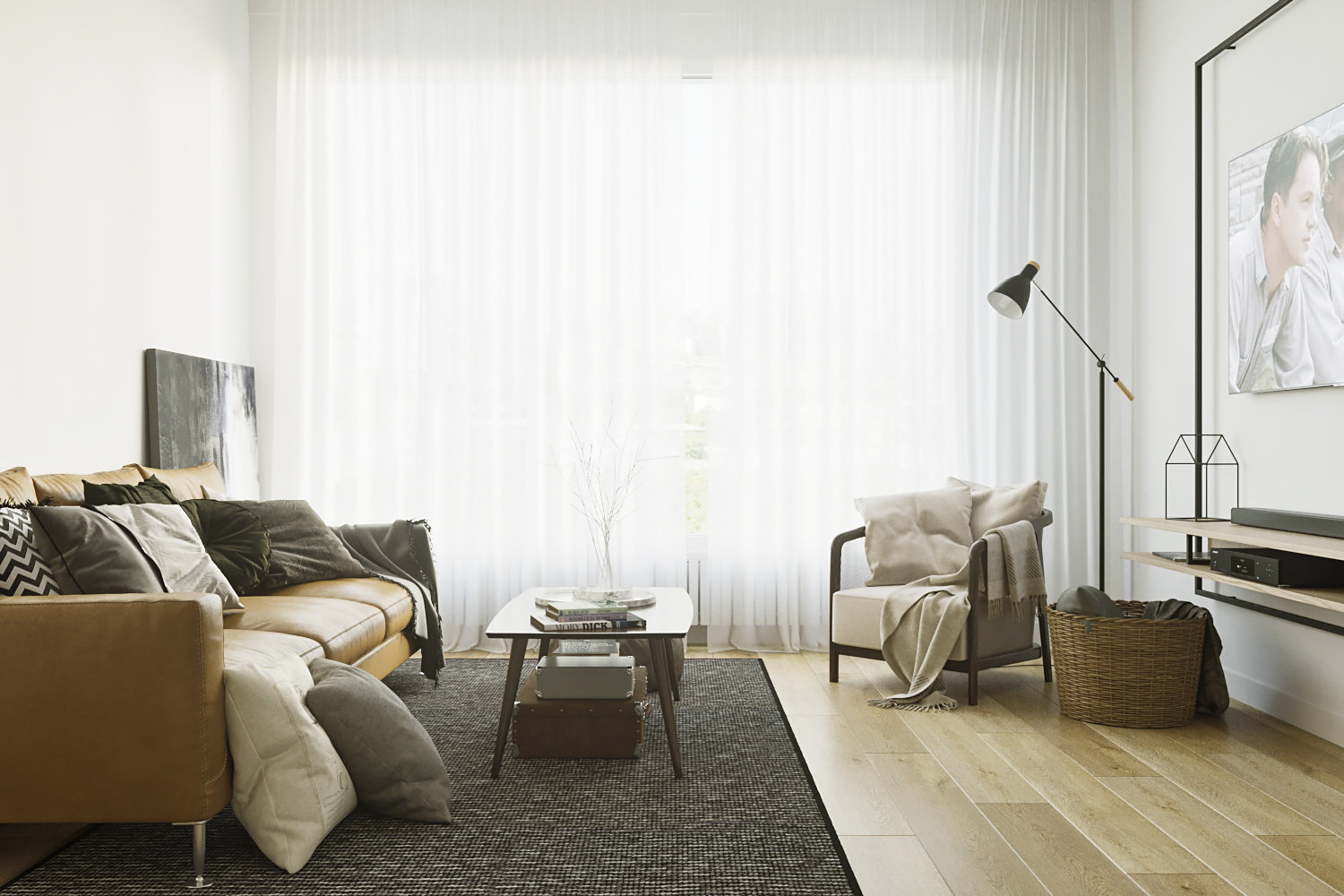 Фотография: Гостиная в стиле Современный, Скандинавский, Квартира, Белый, Проект недели, Бежевый, 3 комнаты, Более 90 метров, ПРЕМИЯ INMYROOM, Валентина Лабодина – фото на INMYROOM