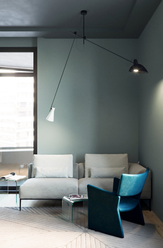 Фотография: Гостиная в стиле Современный, Минимализм, Квартира, Белый, Проект недели, Черный, Синий, Более 90 метров, ПРЕМИЯ INMYROOM, Екатерина Олейникова – фото на INMYROOM