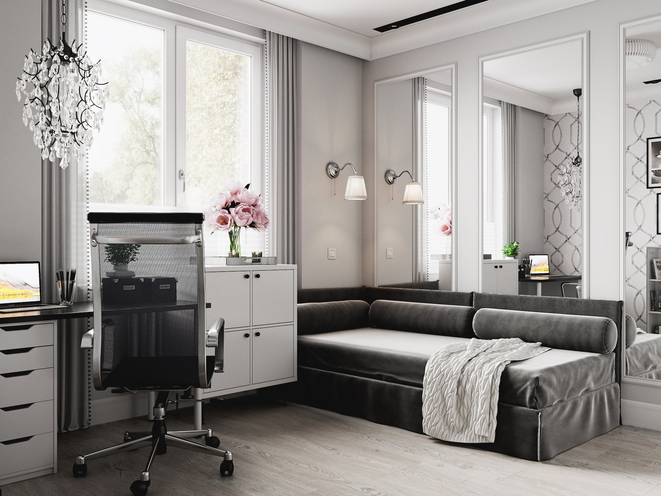Фотография: Кабинет в стиле Классический, Кухня и столовая, Ванная, Гостиная, Детская, Балкон, Квартира, Белый, Проект недели, Черный, 2 комнаты, ПРЕМИЯ INMYROOM – фото на INMYROOM