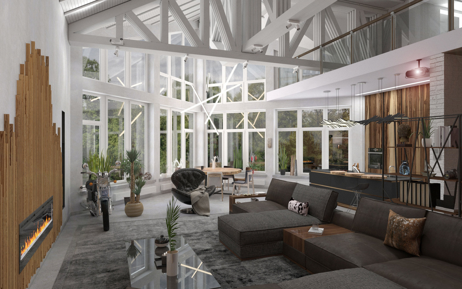 Стильный дом с камином и панорамным окном4,8