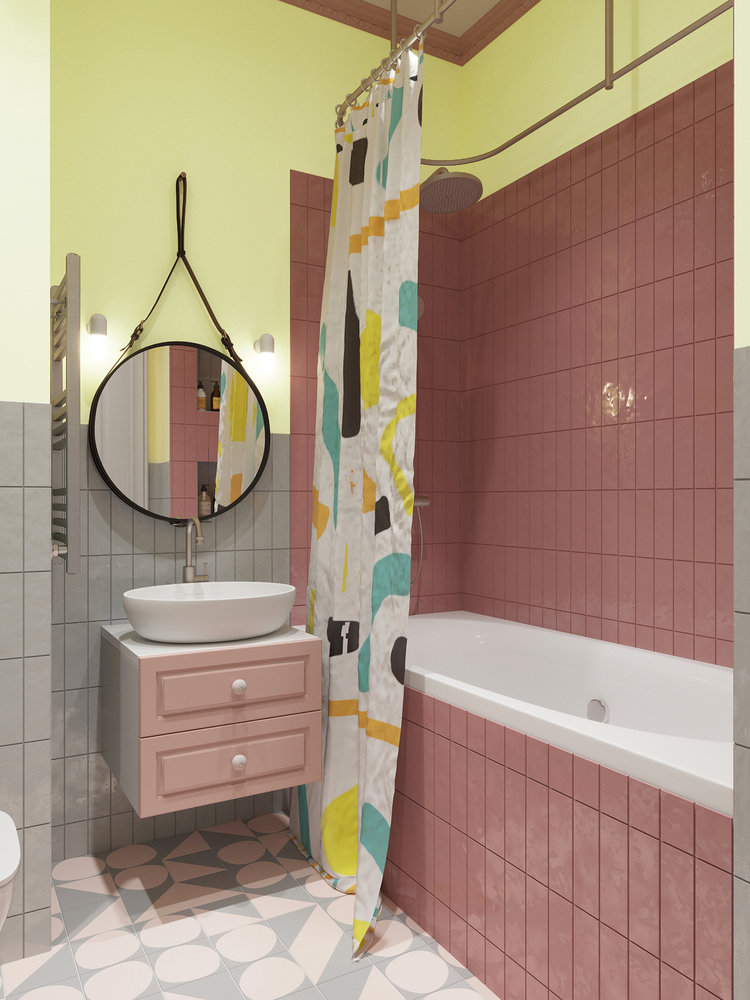 Фотография: Ванная в стиле Современный, Кухня и столовая, Прихожая, Гостиная, Спальня, Квартира, Проект недели, Желтый, Синий, Розовый, 2 комнаты, 40-60 метров, ПРЕМИЯ INMYROOM – фото на INMYROOM
