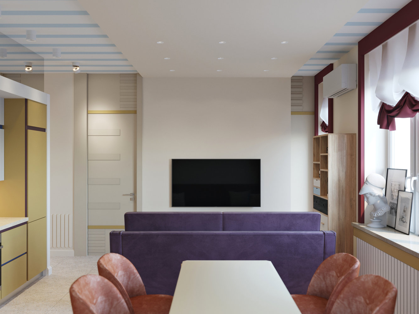 Проект двухкомнатной квартиры в стиле мемфис3,8