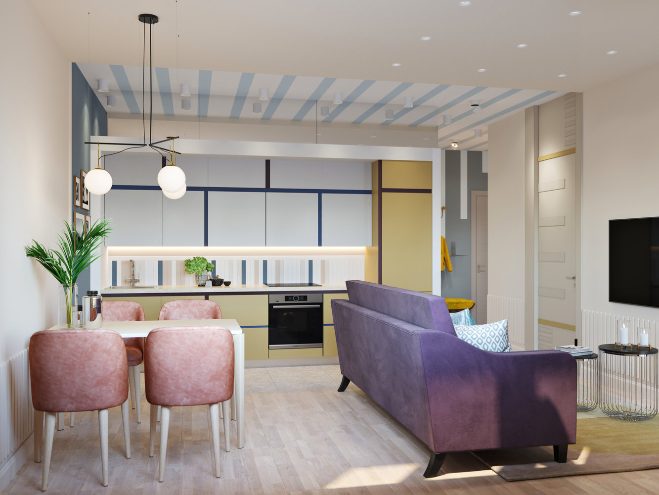Проект двухкомнатной квартиры в стиле мемфис4,1