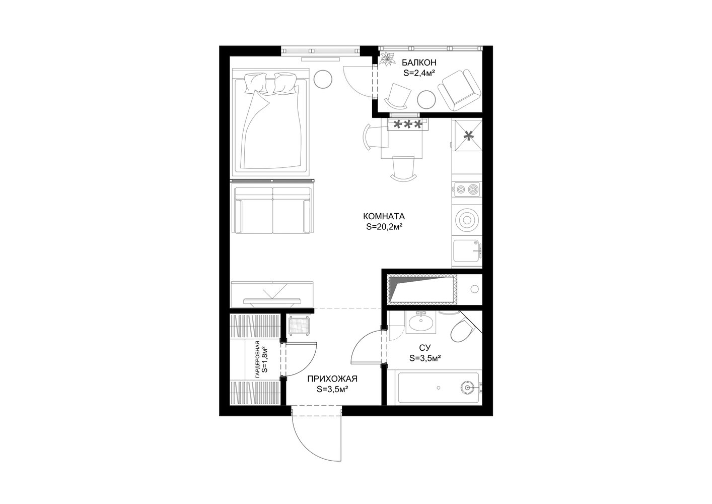 Фотография: Планировки в стиле , Квартира, Студия, Проект недели, Одинцово, Монолитный дом, до 40 метров, Ольга Бойцова – фото на INMYROOM