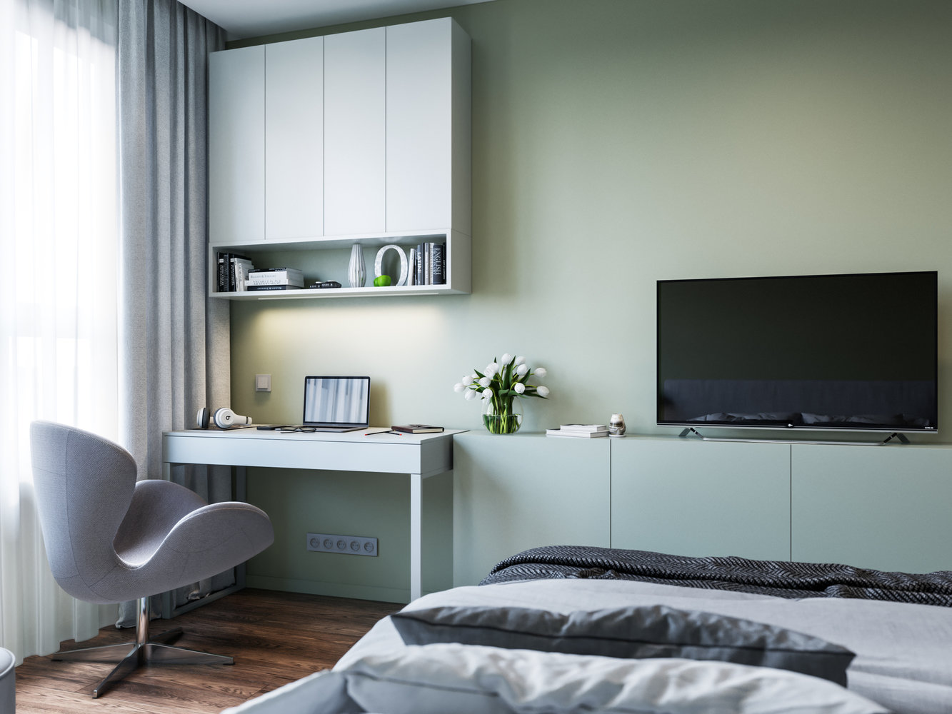 Фотография: Спальня в стиле Современный, Скандинавский, Квартира, Проект недели, Москва, Монолитный дом, 2 комнаты, 40-60 метров, 60-90 метров, Бюро «Общая Площадь» – фото на INMYROOM