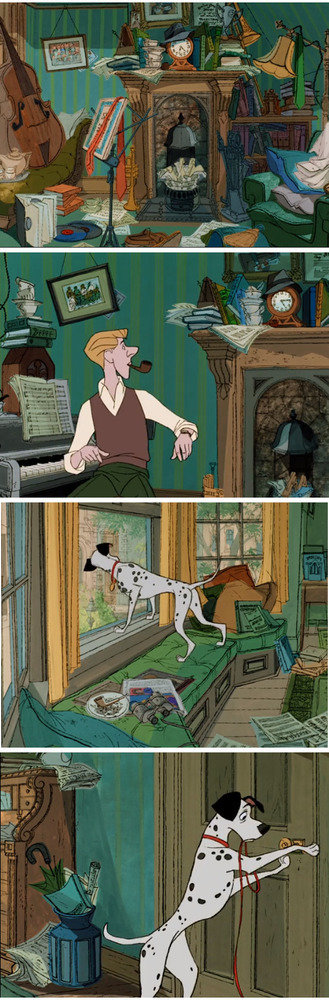 Кадры из мультфильма «101 далматинец», 1961/ режиссер: Клайд Джероними, сценарий: Билл Пит, Доди Смит, продюсер: Уолт Дисней, композитор: Джордж Брунс