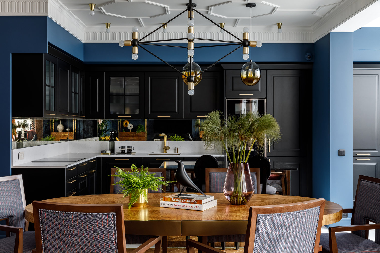 Фотография: Кухня и столовая в стиле Классический, Эклектика, Москва, Желтый, Синий, 3 комнаты, Более 90 метров, #эксклюзивныепроекты, Римма Семенова, Александр Володин – фото на INMYROOM