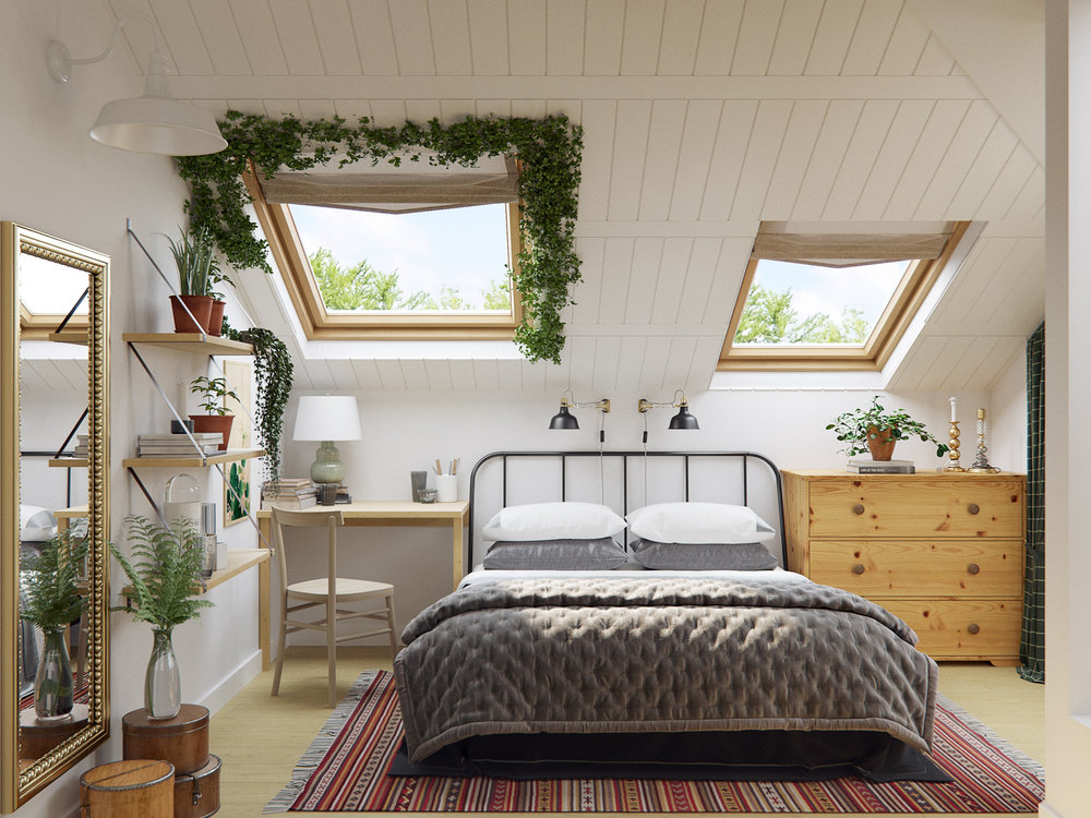 Фотография: Спальня в стиле Эко, Гид, квартира в мансарде, Geometrium, интерьер мансарды, Маргарита Рассказова, Ольга Солнышкова, Виктория Лазарева, Ирина Райхер – фото на INMYROOM