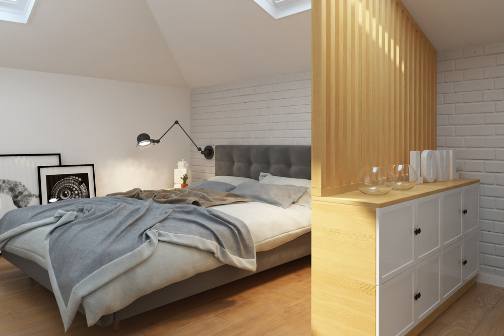 Фотография: Спальня в стиле Скандинавский, Гид, квартира в мансарде, Geometrium, интерьер мансарды, Маргарита Рассказова, Ольга Солнышкова, Виктория Лазарева, Ирина Райхер – фото на INMYROOM