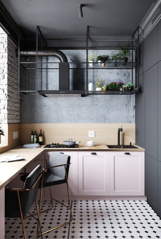 Фотография: Кухня и столовая в стиле Лофт, Квартира, Перепланировка, Москва, 3 комнаты, 60-90 метров, Анна Показаньева – фото на INMYROOM