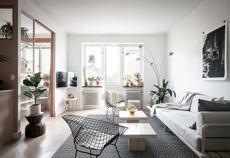 Фотография: Гостиная в стиле Скандинавский, Современный, Декор интерьера, Квартира, Белый, Розовый, 40-60 метров – фото на INMYROOM