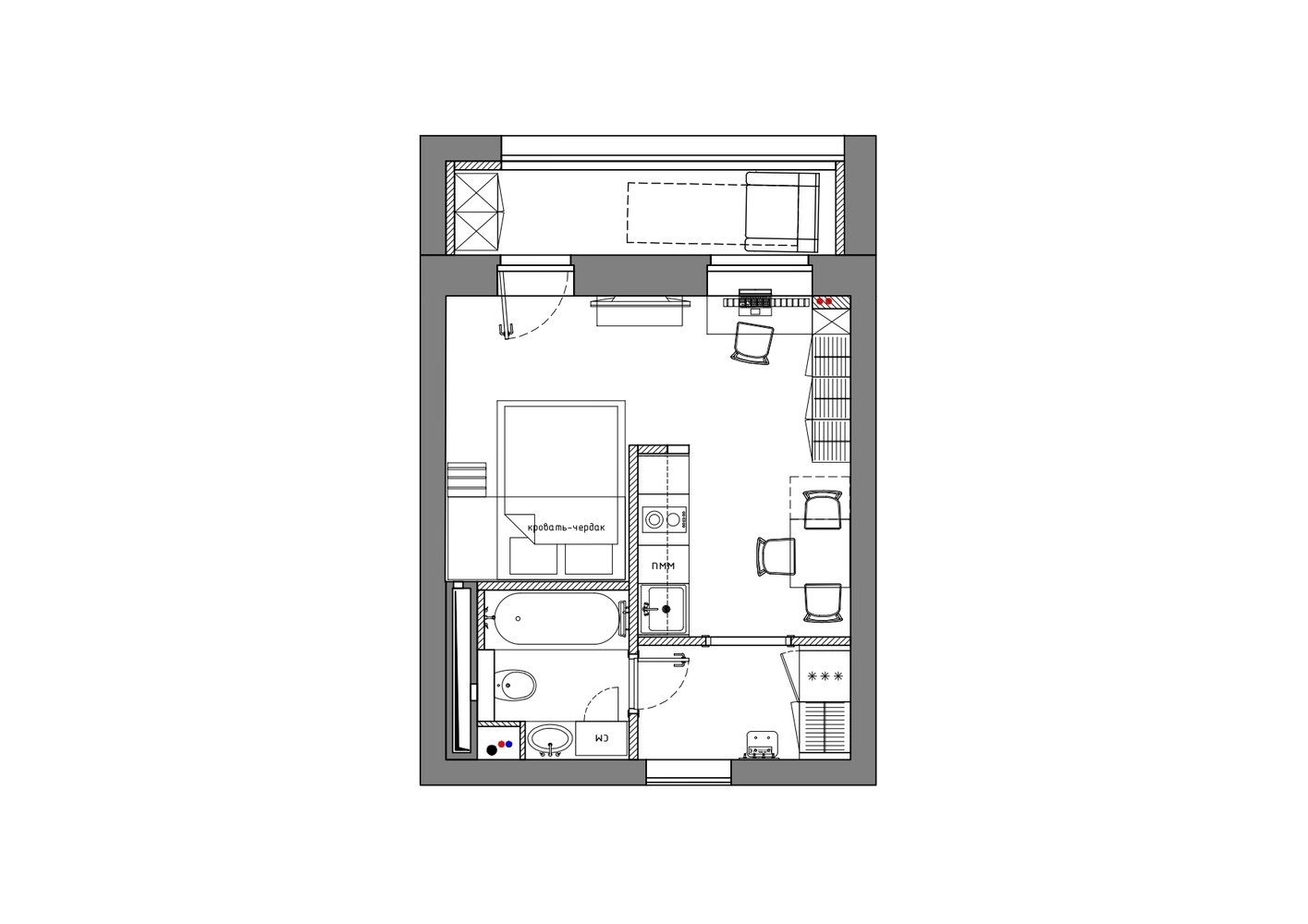 Маленькая студия для семьи из трех человек4,6